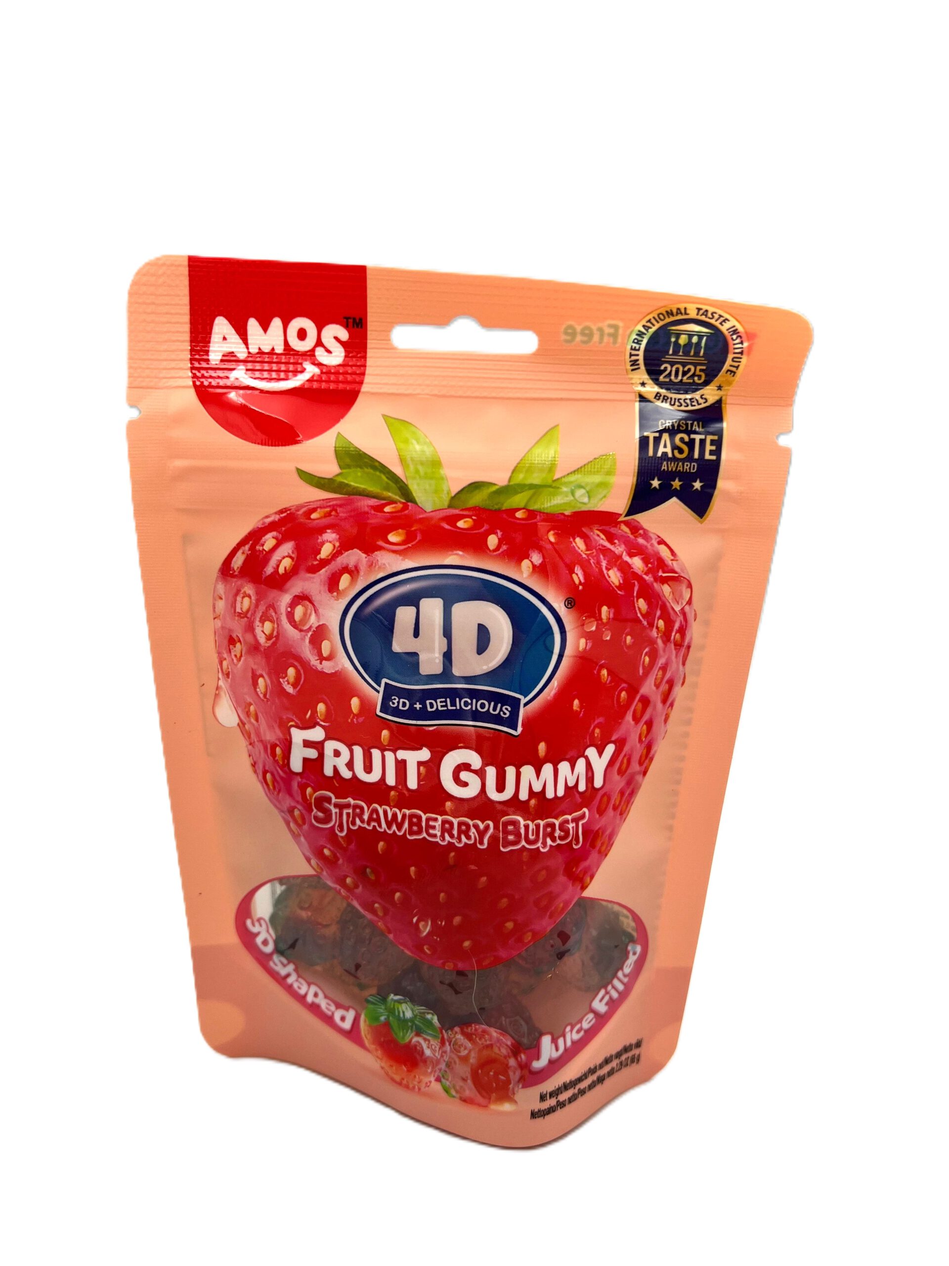 Zachte, chewy 4D fruit gummies met een intense strawberry burst-smaak en speelse vorm voor een extra leuke snoepervaring.