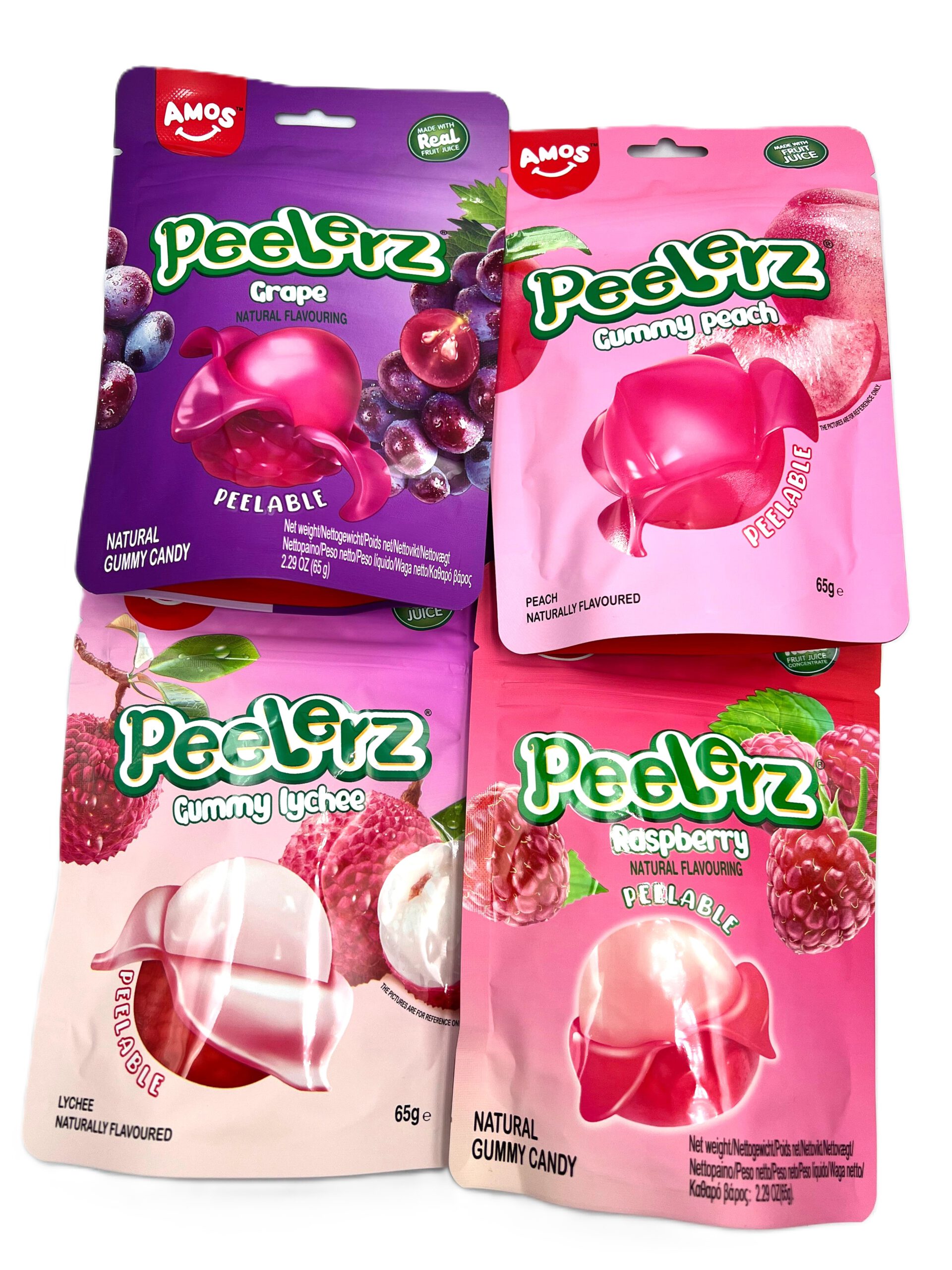 Een kleurrijke en fruitige mix van de populaire peelbare gummies van het merk Amos! Deze combinatie brengt vier heerlijke smaken samen: sappige druif, zoete perzik, exotische lychee en frisse framboos voor een perfecte balans tussen zoet en licht zuur.