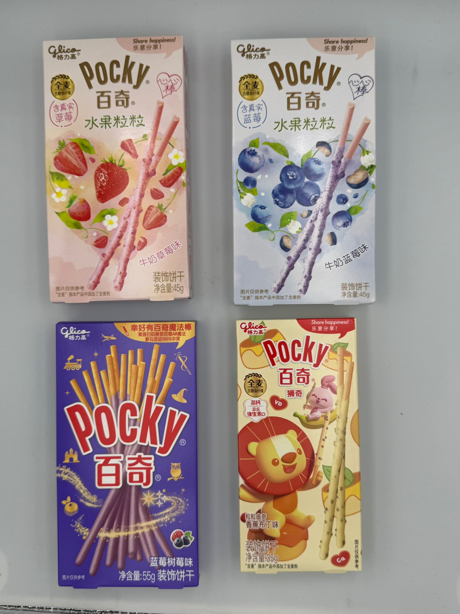 Pocky Fruity Lovers Mix : een kleurrijke selectie van fruitige smaken: aardbei, bosbes, framboos en banaan. Heerlijk knapperige biscuitsticks met een romige fruitcoating, perfect om te delen of zelf van te genieten.