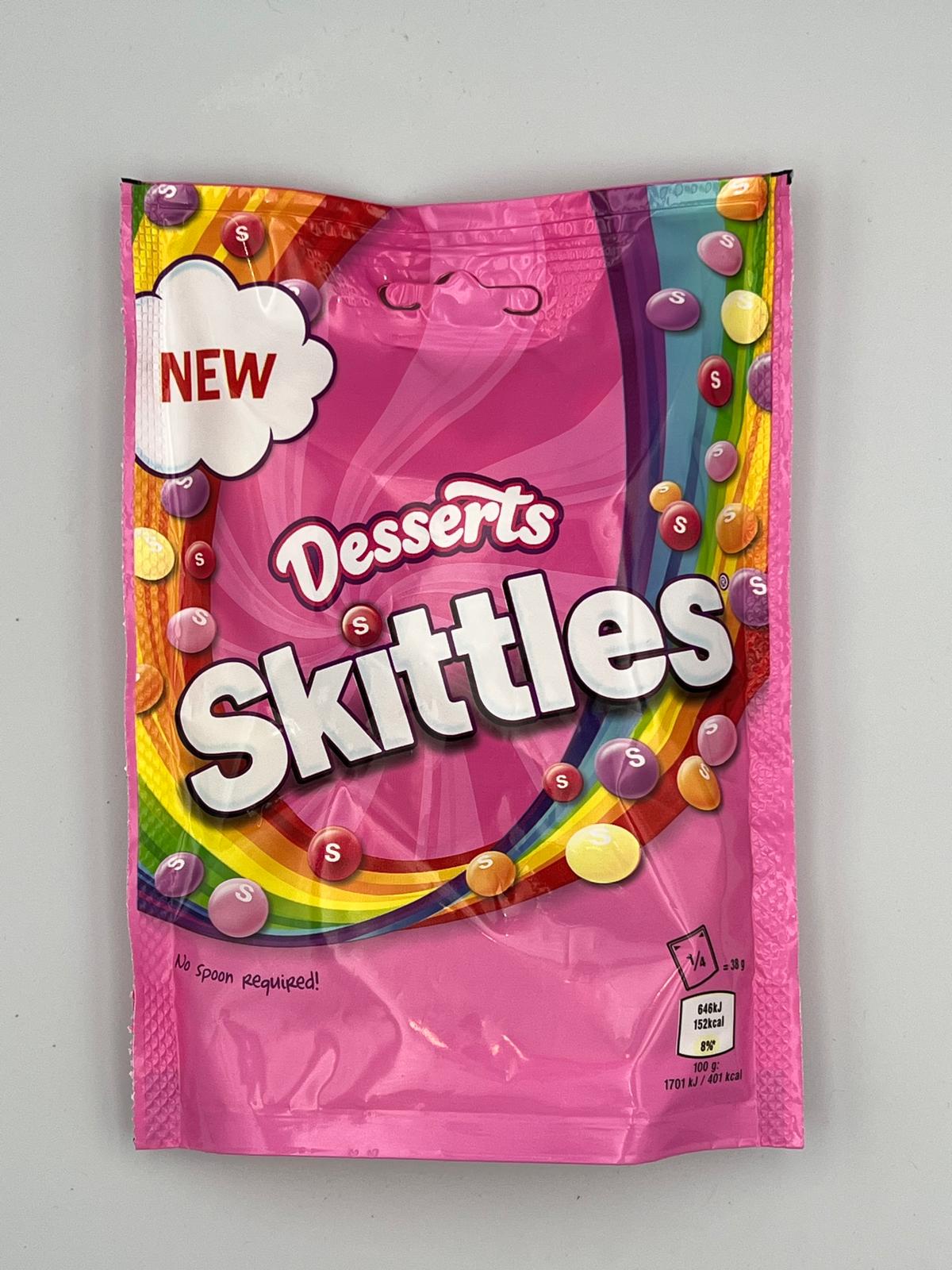 Een kleurrijke mix van Skittles met heerlijke dessertsmaken zoals aardbeienijs, citroentaart en chocoladetaart. Perfect voor een zoete traktatie,