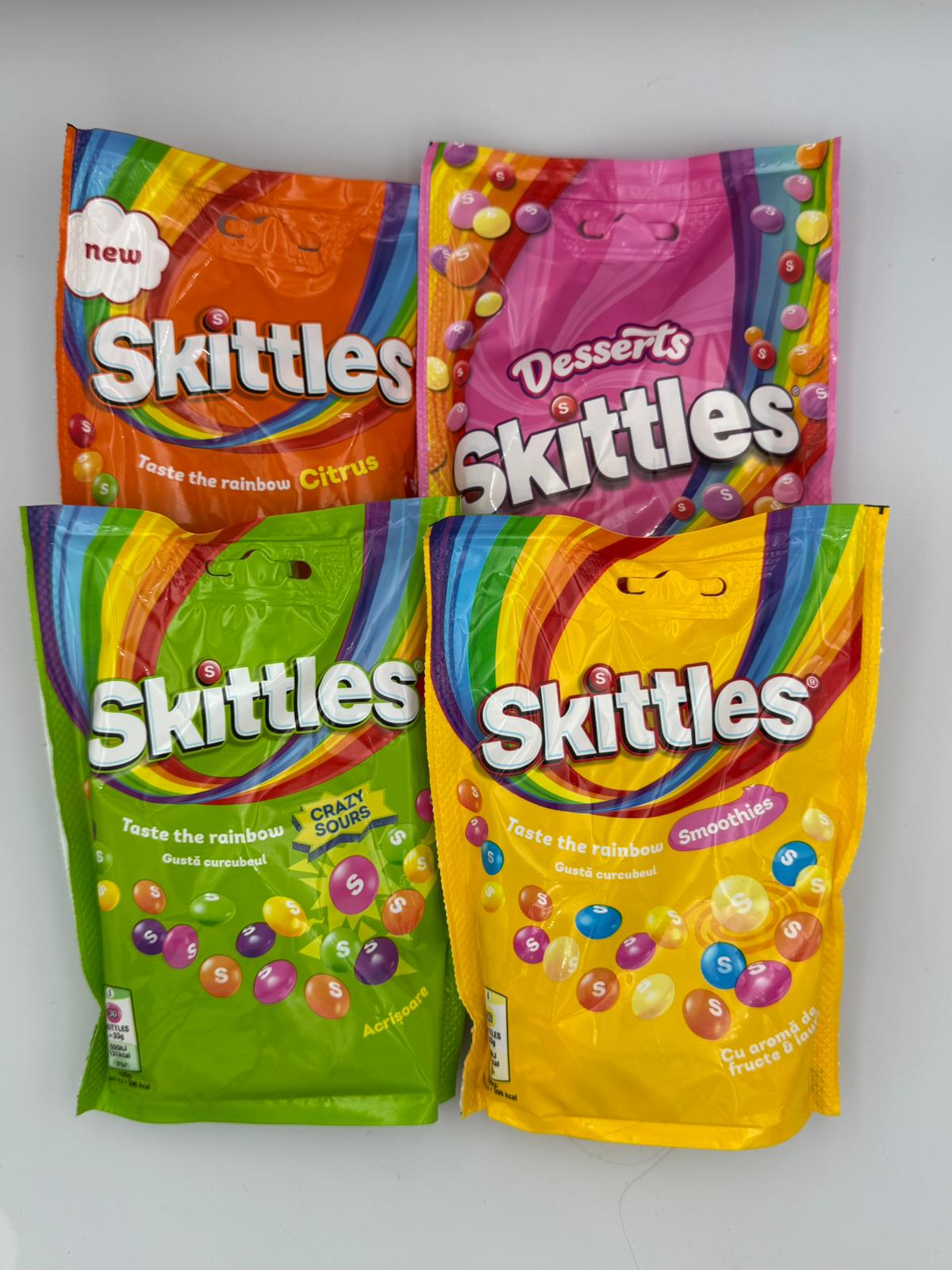 Ontdek de ultieme smaakexplosie met deze kleurrijke Skittles mix. Geniet van de pittige kick van Crazy Sour, de frisse en fruitige Citrus, de romige smaken van Smoothies en de zoete verwennerij van Dessert. Deze Skittles zijn 100% vegan, dus iedereen kan meegenieten. Perfect om te delen, cadeau te doen of gewoon zelf van te genieten.